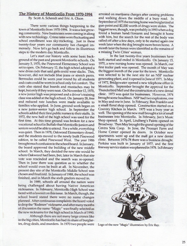 Monticello….a river town on the rise….. Post author:Todd Larson Post published:March 9, 2012 Post category:Monticello Post comments:0 Comments Pictures are not in correct order. You Might Also Like 1971 Pow-Wow Monticello Minnesota Redmen Yearbook December 7, 2015 Coach Dick Bakke’s Football Scrapbook. February 1, 2015 1947 Pow-Wow Monticello Minnesota Redmen Yearbook December 4, 2015 This Post Has 0 Comments Tina March 13, 2012 Reply Such a fun website to see all this compiled in one place. Was also fun to see this book on here. I was the class that put this together. Funny I saw that my name is printed in it as Cristina Warner. Never went by Cristina, always Tina. Ha. Leave a Reply to Tina Cancel replyCommentEnter your name or username to comment Enter your email address to comment Enter your website URL (optional) Save my name, email, and website in this browser for the next time I comment. Δ