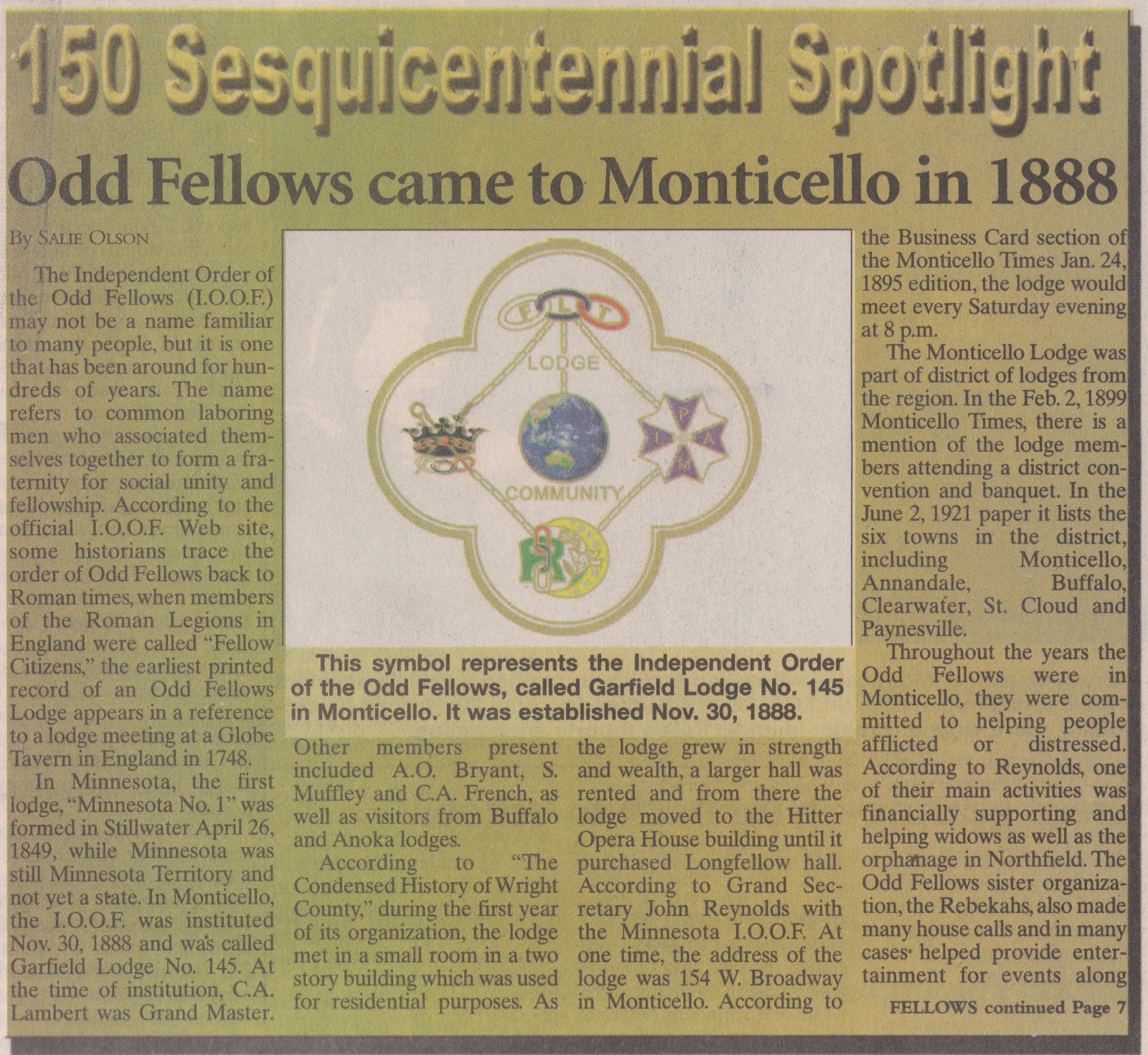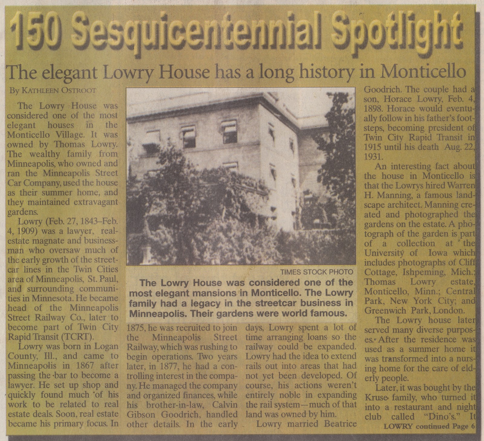 Monticello, MN Sesquicentennial Monticello Times articles looking back
